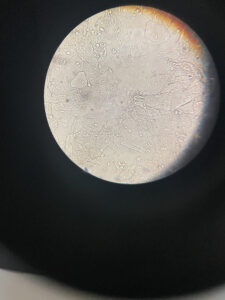 3 – Microscopia a fresco: clue cells ou células alvo (células escamosas impregnadas pela flora cocobacilar);